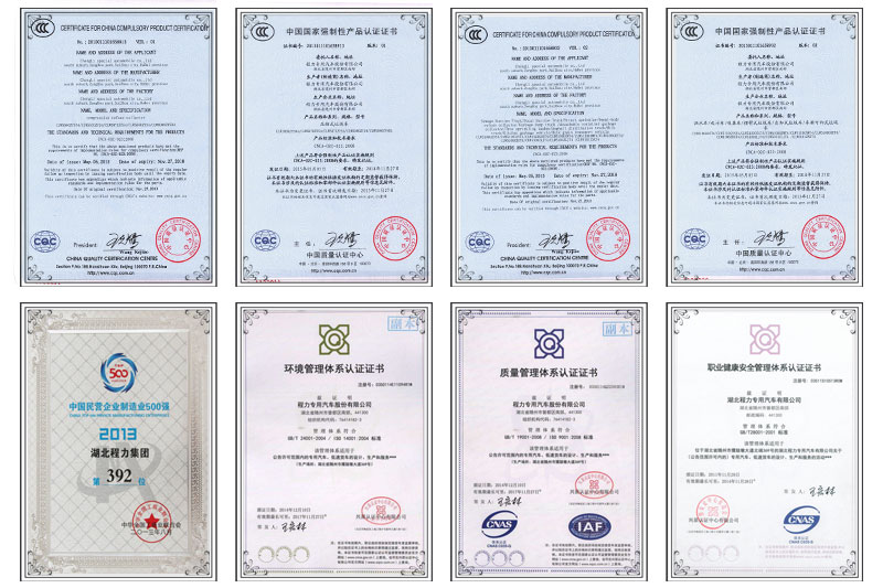 程力專用汽車股份有限公司先后被隨州市政府評為“外貿先進單位”、 “工業八強企業”、“貢獻突出企業”、“十強納稅企業”,湖北省國稅局“全省國稅百佳納稅人”,湖北省“守合同重信用”企業等榮譽稱號;國家“高新技術企 業”;公司“程力威”。